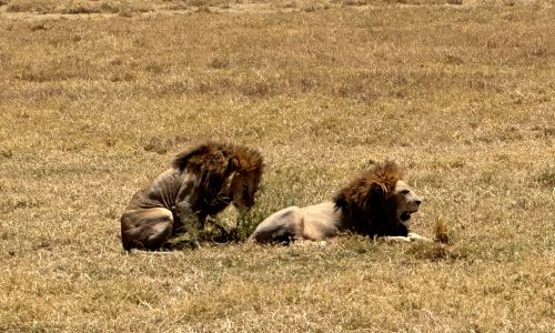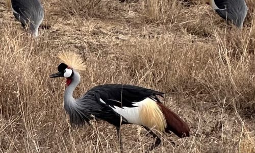 The light inside the crater feels almost dreamlike—somehow brighter, clearer, and more surreal than on the rim. During our full-day game drive, we saw hyena, buffalo, zebra, gazelle, lions, wildebeest, hartebeest, jackal, hippos, and even a distant black rhino grazing in the morning haze. The wetlands attracted flocks of greater and lesser flamingos, along with superb birdlife. A highlight was watching more than twenty grey crowned cranes take flight at once—their golden crests catching the sun like sparks.