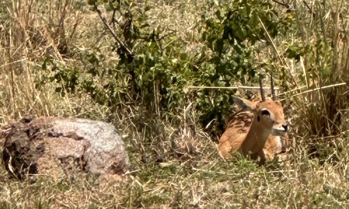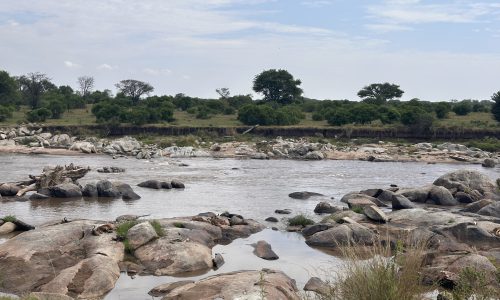 We visited the banks of the Mara River — now quiet, almost eerily so. It was hard to imagine that in July, August, and September, vehicles line up here, jockeying for position as wildebeest and zebra hurl themselves into crocodile-filled waters. The evidence remained: carcasses still scattered on the rocks below, stark reminders of the brutality of the migration. We were lucky to see a small herd gathered at the riverbank, hesitating, testing the edge — a lesson in patience. With lunch reservations and site visits ahead, we couldn’t wait for what might take hours, with no guarantee they’d cross at all.