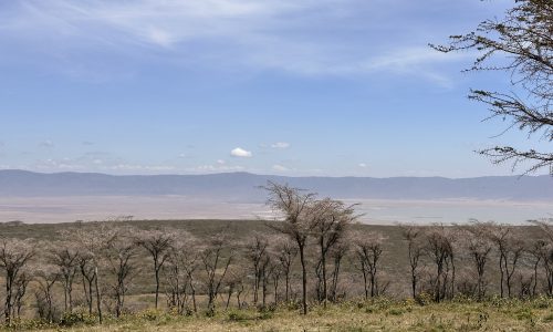 Susan’s Tanzania journey continued north from the golden grasslands and baobabs of Tarangire, to the legendary Ngorongoro Crater. The drive itself is all part of the adventure—passing fertile farmland, banana groves, and bustling small towns. The route passes through the forested escarpment of Lake Manyara National Park, known for its birdlife and primates, and then winds through the lively town of Mto wa Mbu, racing alongside colorful tuk-tuks, bicycles, and market stalls overflowing with bananas and avocados. From here the climb begins toward cooler highlands, passing through Karatu, the gateway town that serves as the base for many crater-bound safaris.